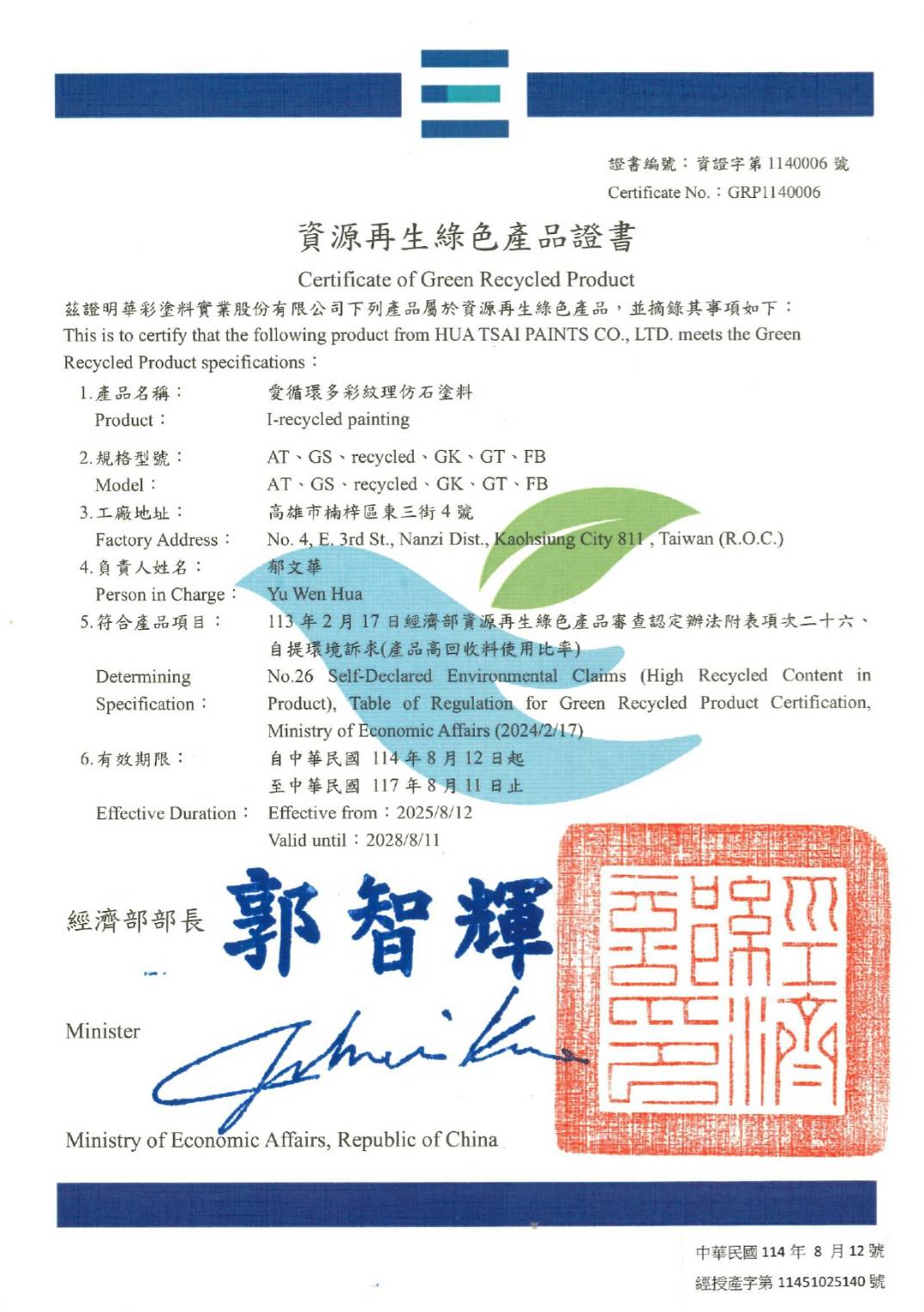 2025-資源再生綠色產品證書