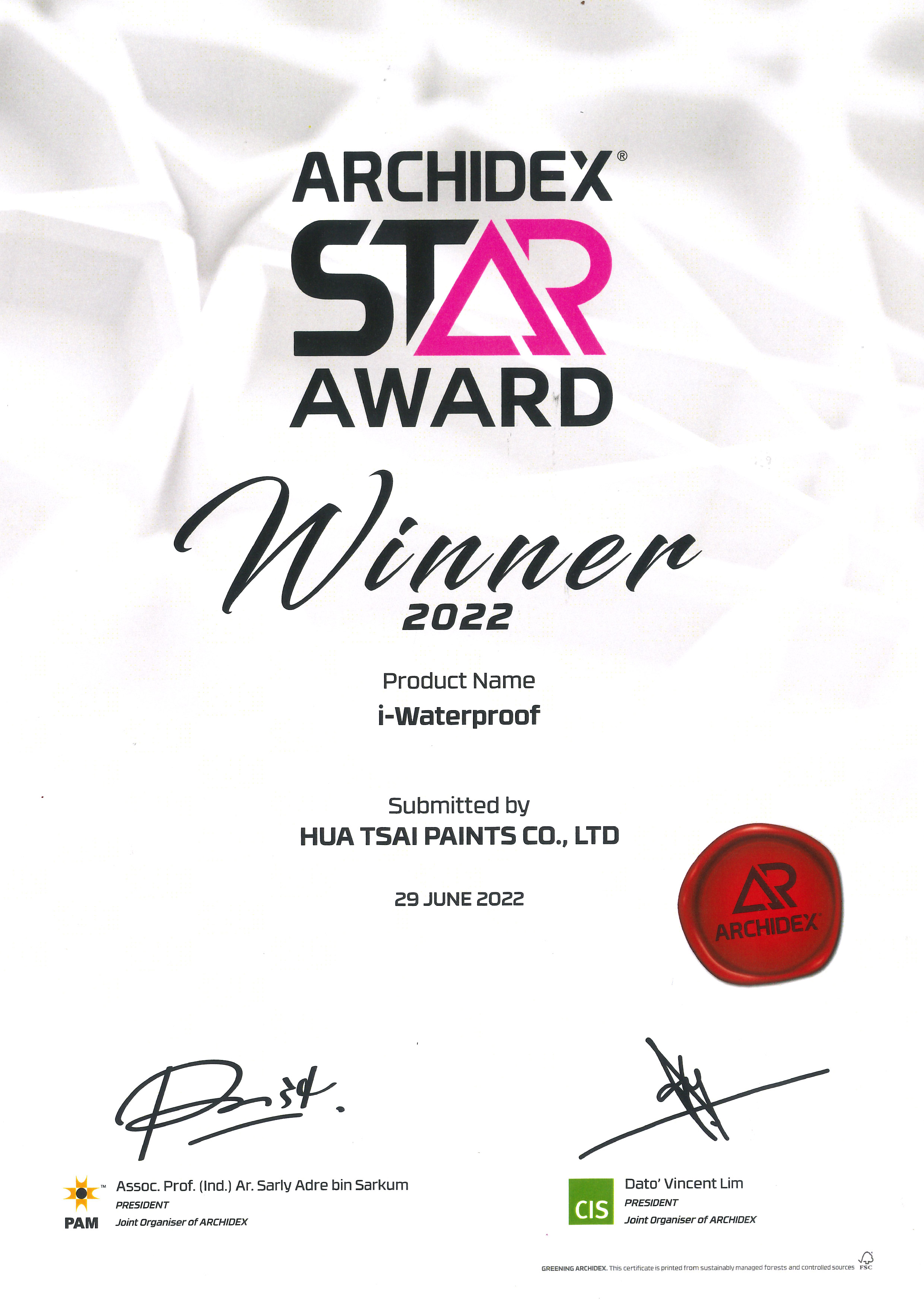 2022 - ARCHIDEX Malaysia International Building, Interior Design and Building Materials Exhibition - Product Star Award