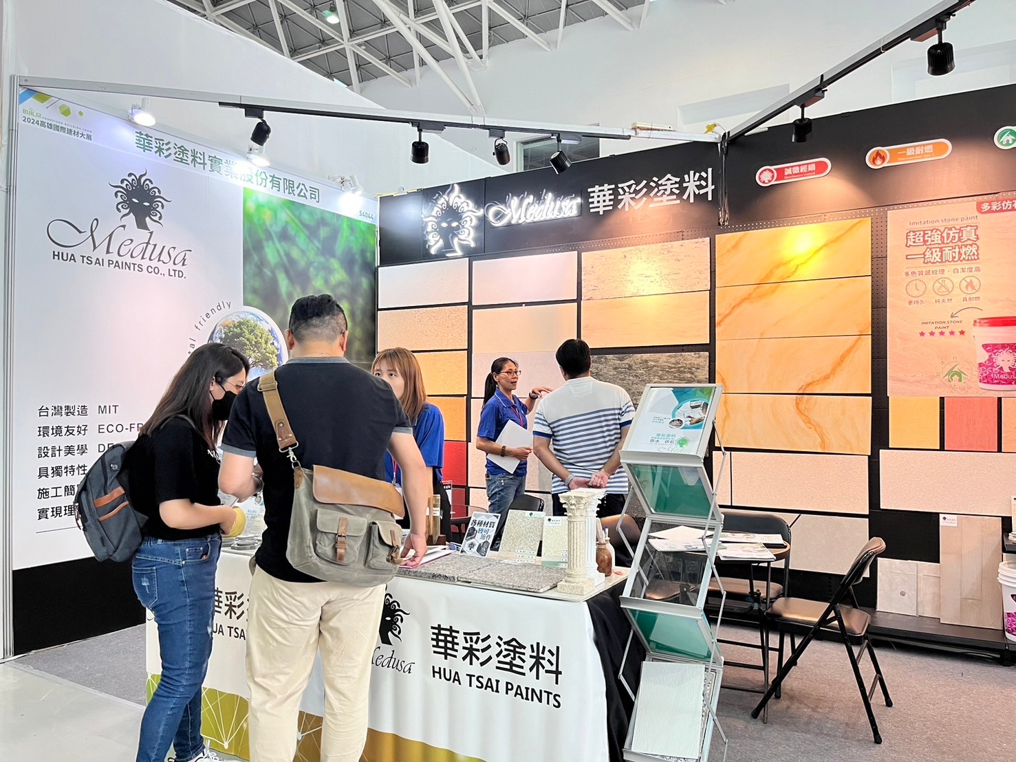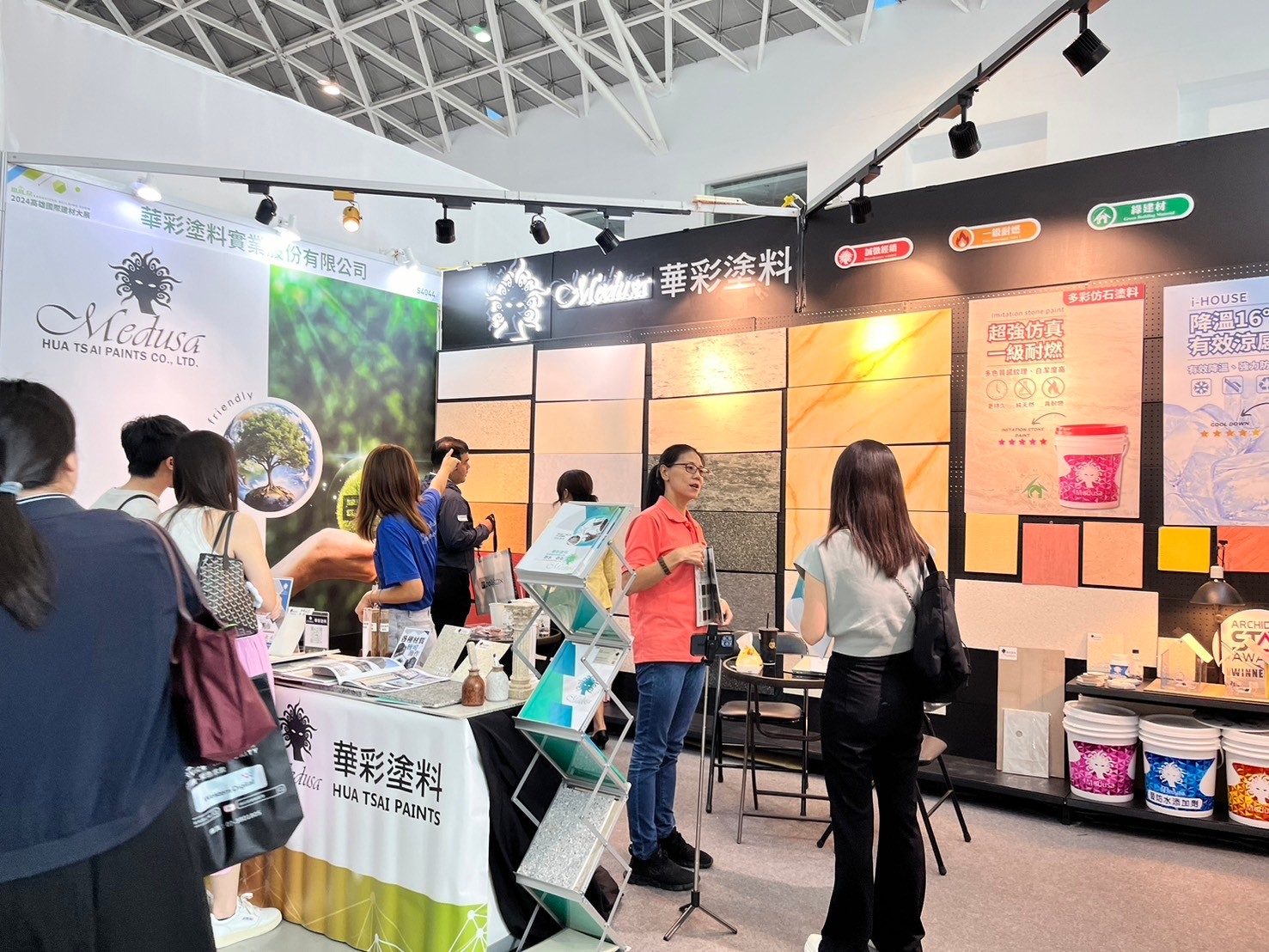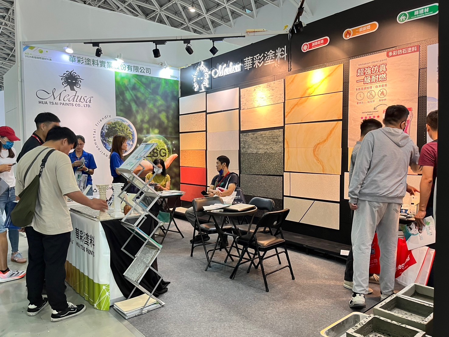 Hua Tsai Participate in the 2024 Kaohsiung International Building Materials and Products Exhibition, displaying sound insulation materials, exterior walls, interior walls, floor coating series, waterproof materials, and thermal insulation materials, including imitation stone paint, imitation rock paint, texture paint, waterproof additives, and thermal insulation coatings ...etc. to appear simultaneously.