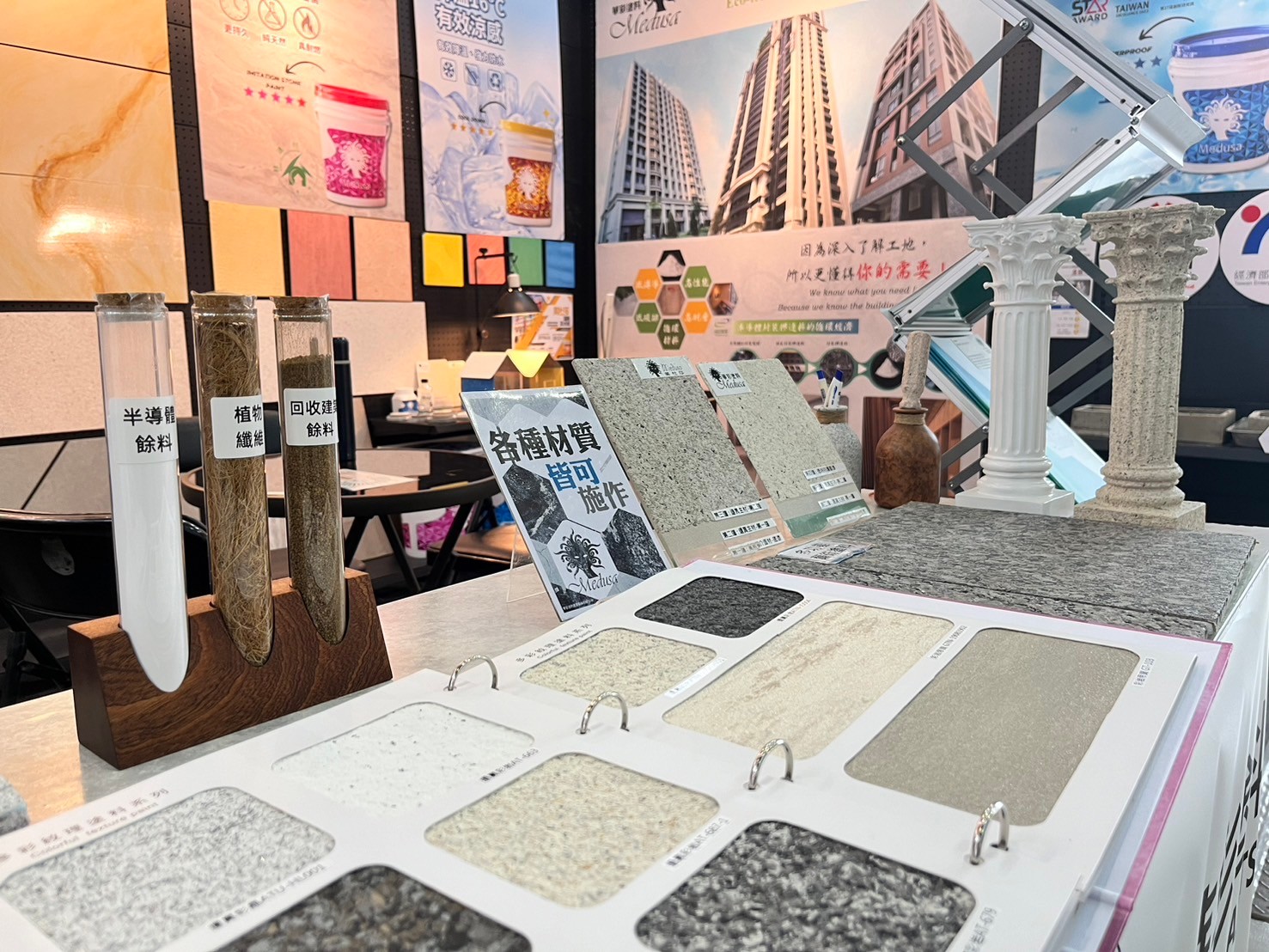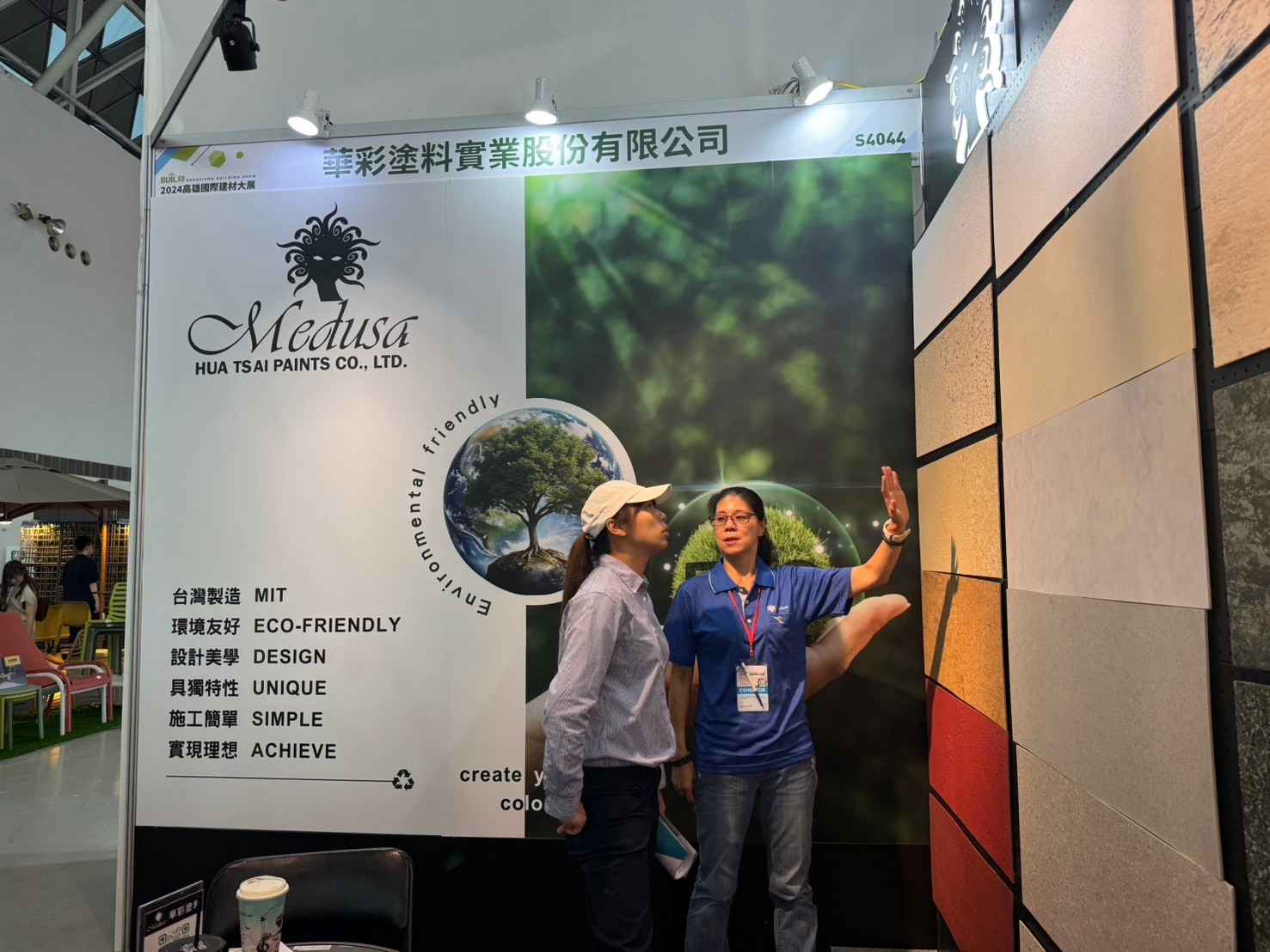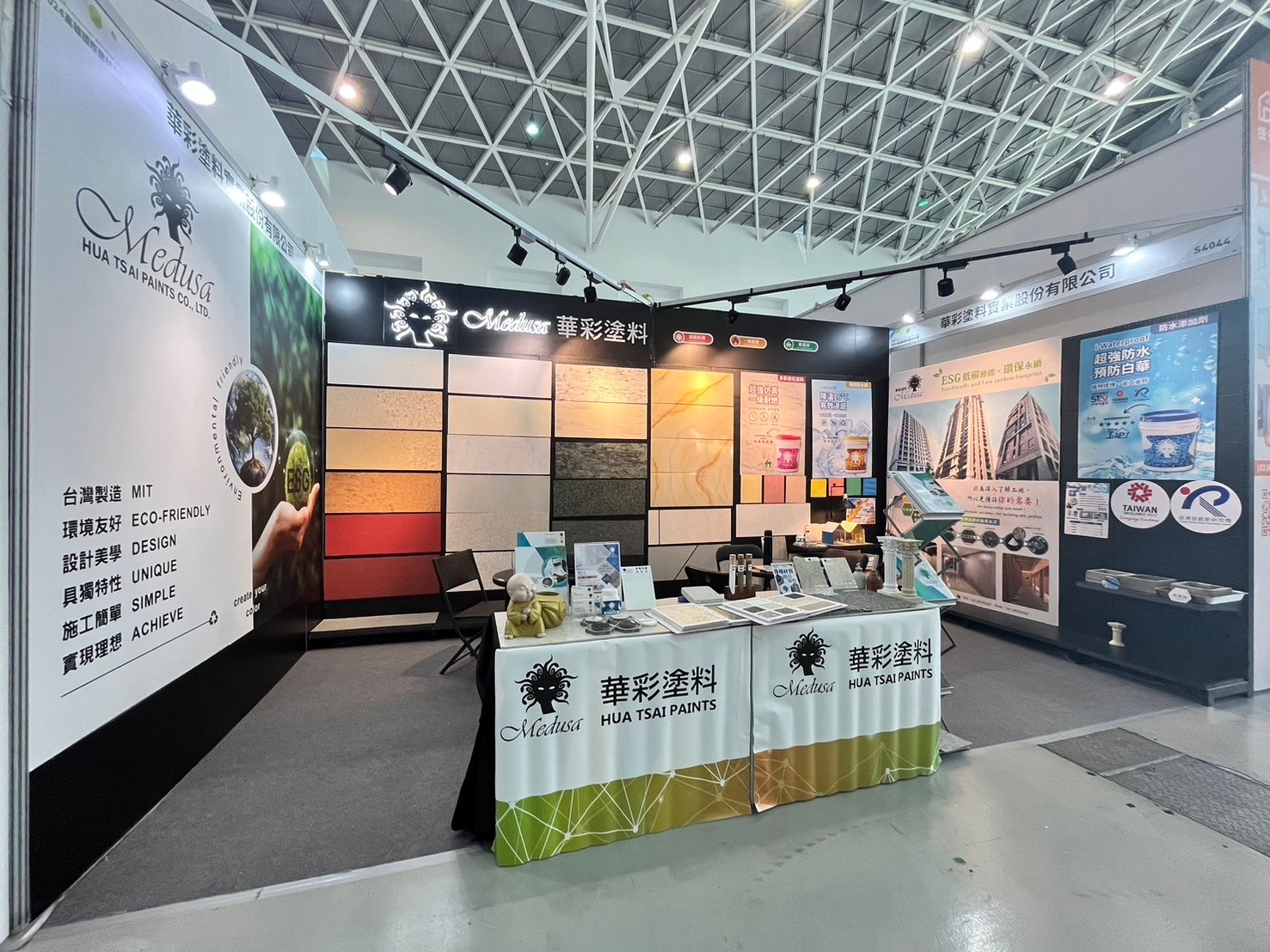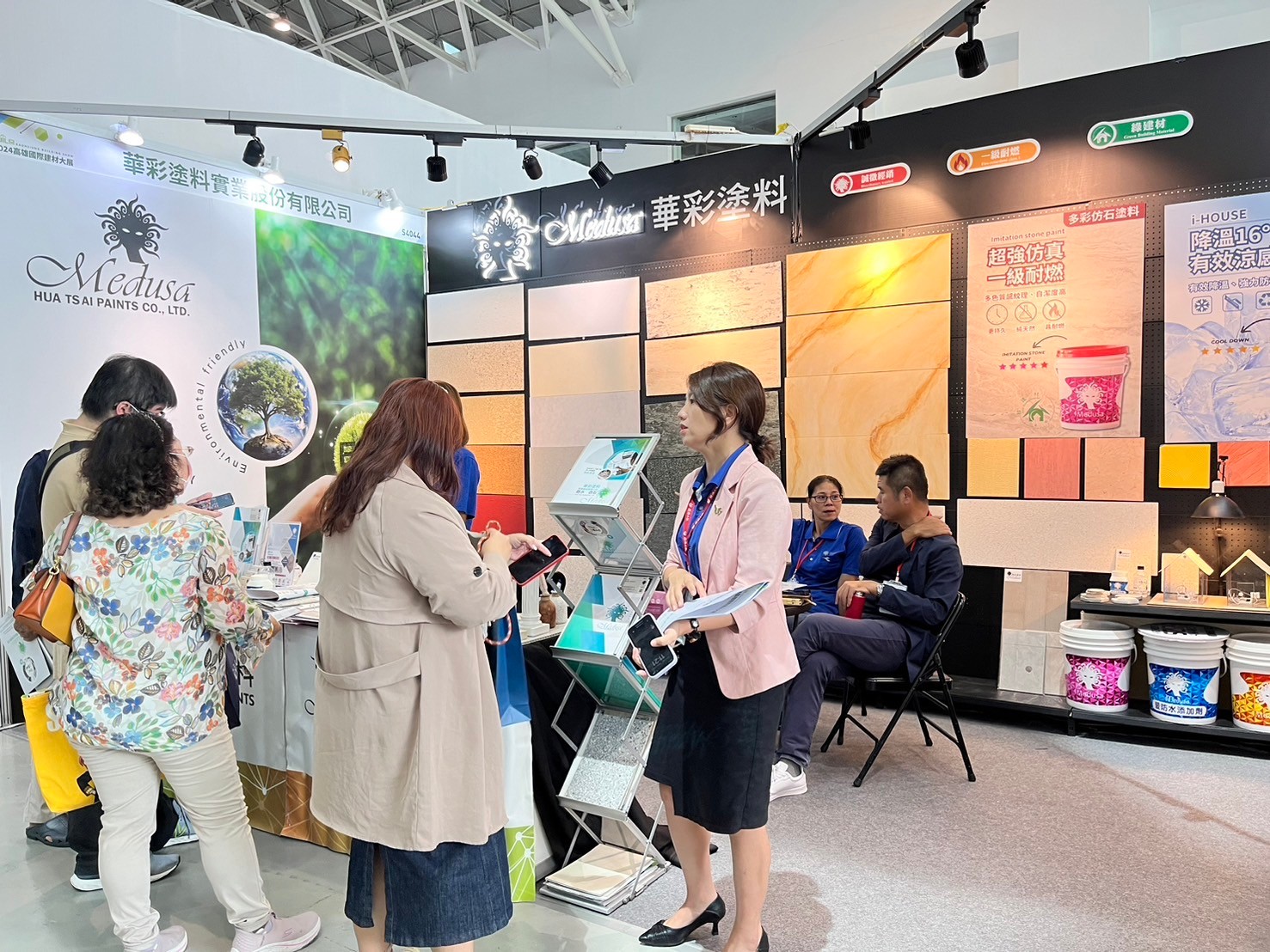 Hua Tsai Participate in the 2024 Kaohsiung International Building Materials and Products Exhibition, displaying sound insulation materials, exterior walls, interior walls, floor coating series, waterproof materials, and thermal insulation materials, including imitation stone paint, imitation rock paint, texture paint, waterproof additives, and thermal insulation coatings ...etc. to appear simultaneously.