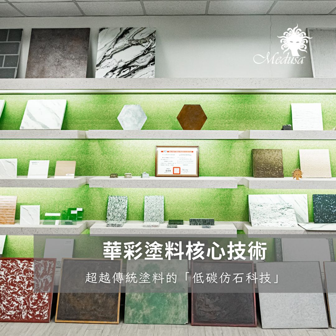 Huacai Coatings leads Taiwan's coatings industry toward true sustainable development with its core technologies such as low-carbon stone-like technology, recycled material upgrading and reuse, PCR recycling bins, and ISO 14067 carbon footprint verification.