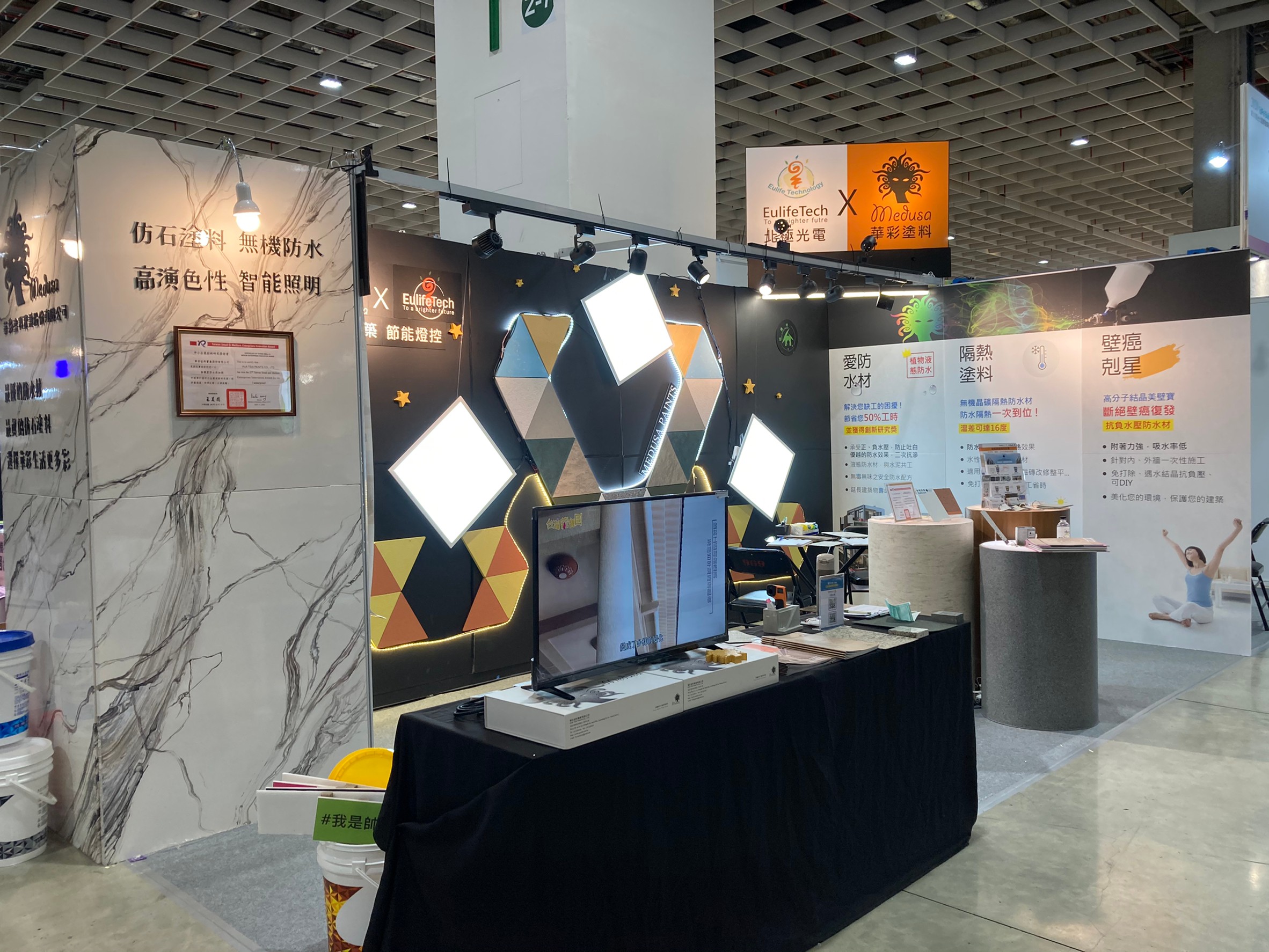 The 2020 Taipei International Building Materials and Products Exhibition will showcase the "Energy-saving Light Control x Smart Building". Through the combination of lighting, color and color block stitching, the visual effect of passion and vitality is displayed.